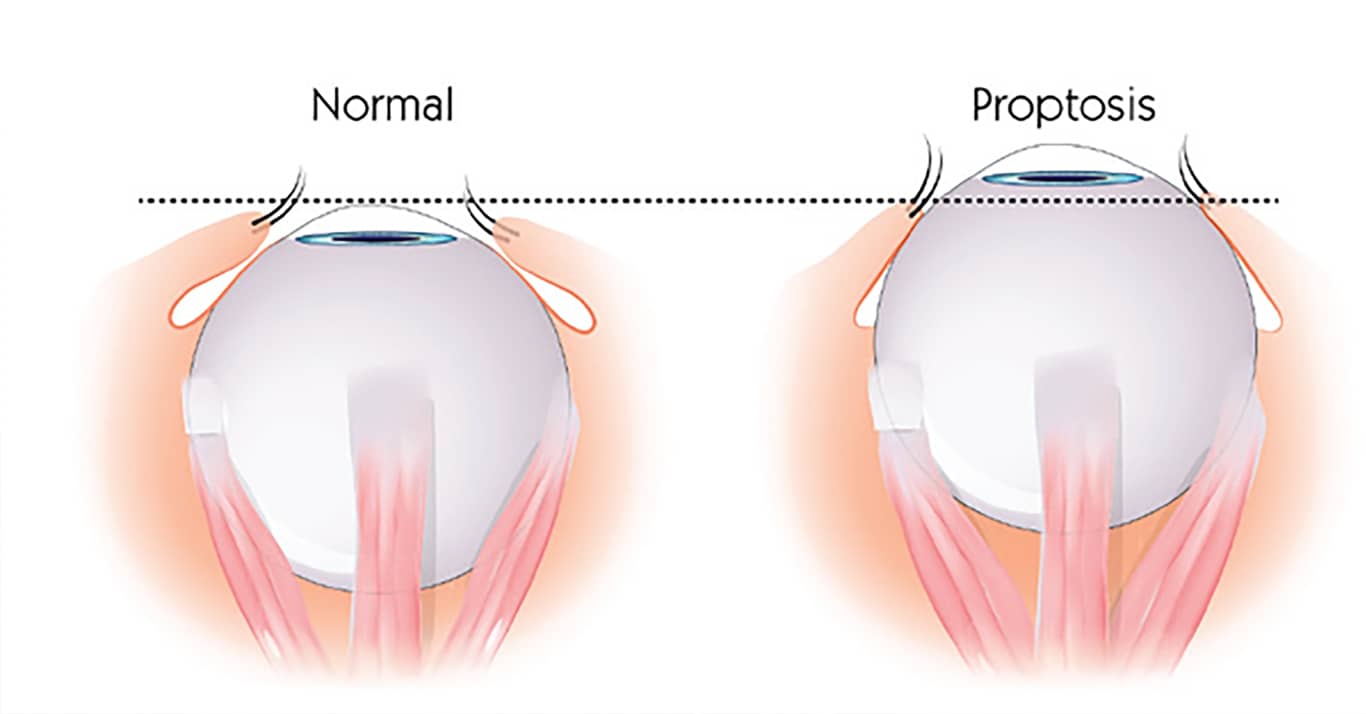 برآمدگی چشم (پروپتوز) / سوزش چشم / پلک های متورم و ملتهب (بلفاریت) / خشکی چشم یا اشک آلودگی چشم / پلک زدن مکرر / حساسیت به نور (فتوفوبیا) / درد چشم و سردرد / مشکل در حرکت دادن چشم ها / دوبینی (دیپلوپی)