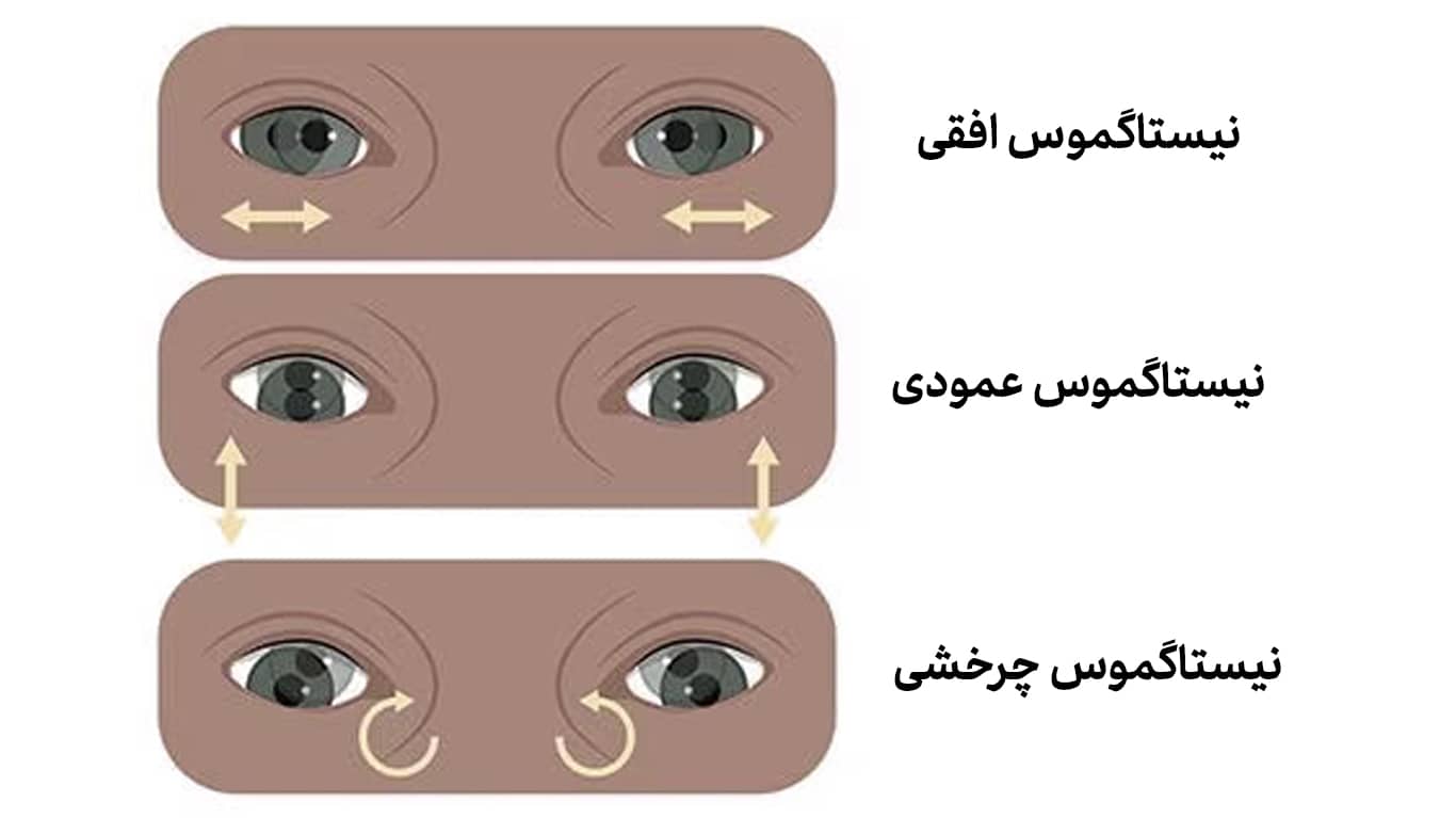 - به صورت دایره ای (نیستاگموس چرخشی یا پیچشی).