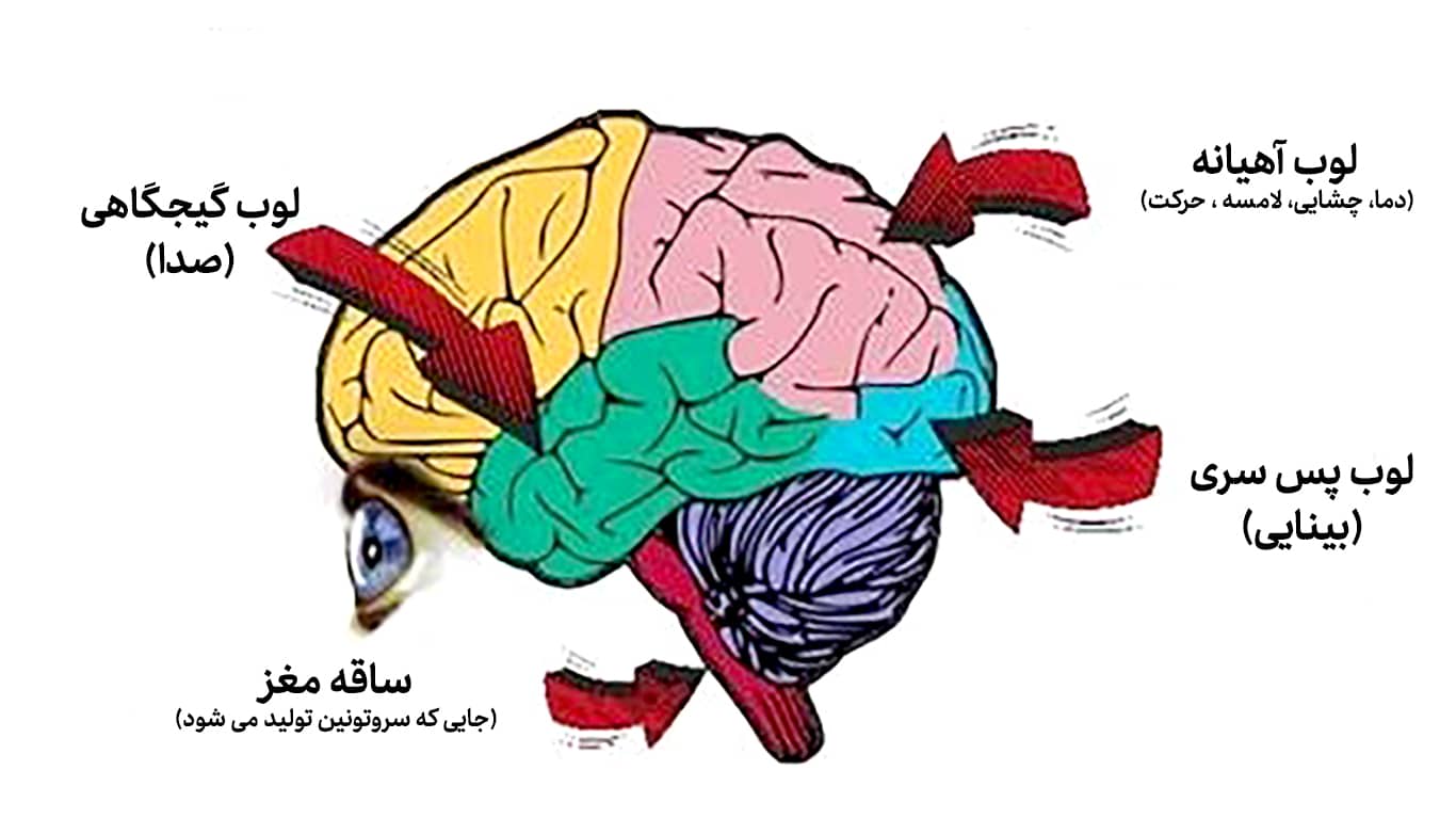 • فشار روی نورون در شبکیه شما که پخش می‌ شود.