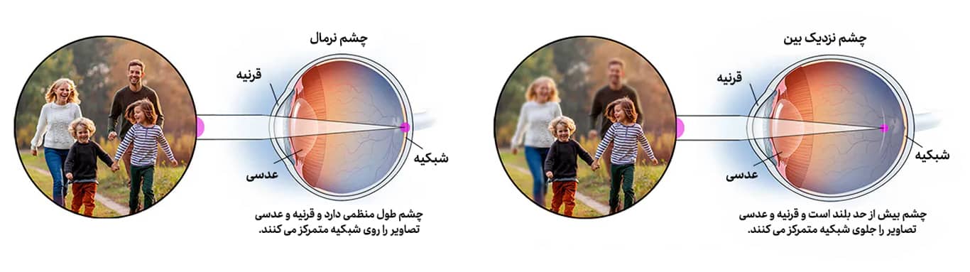 چه چیزی باعث نزدیک‌ بینی می‌ شود؟